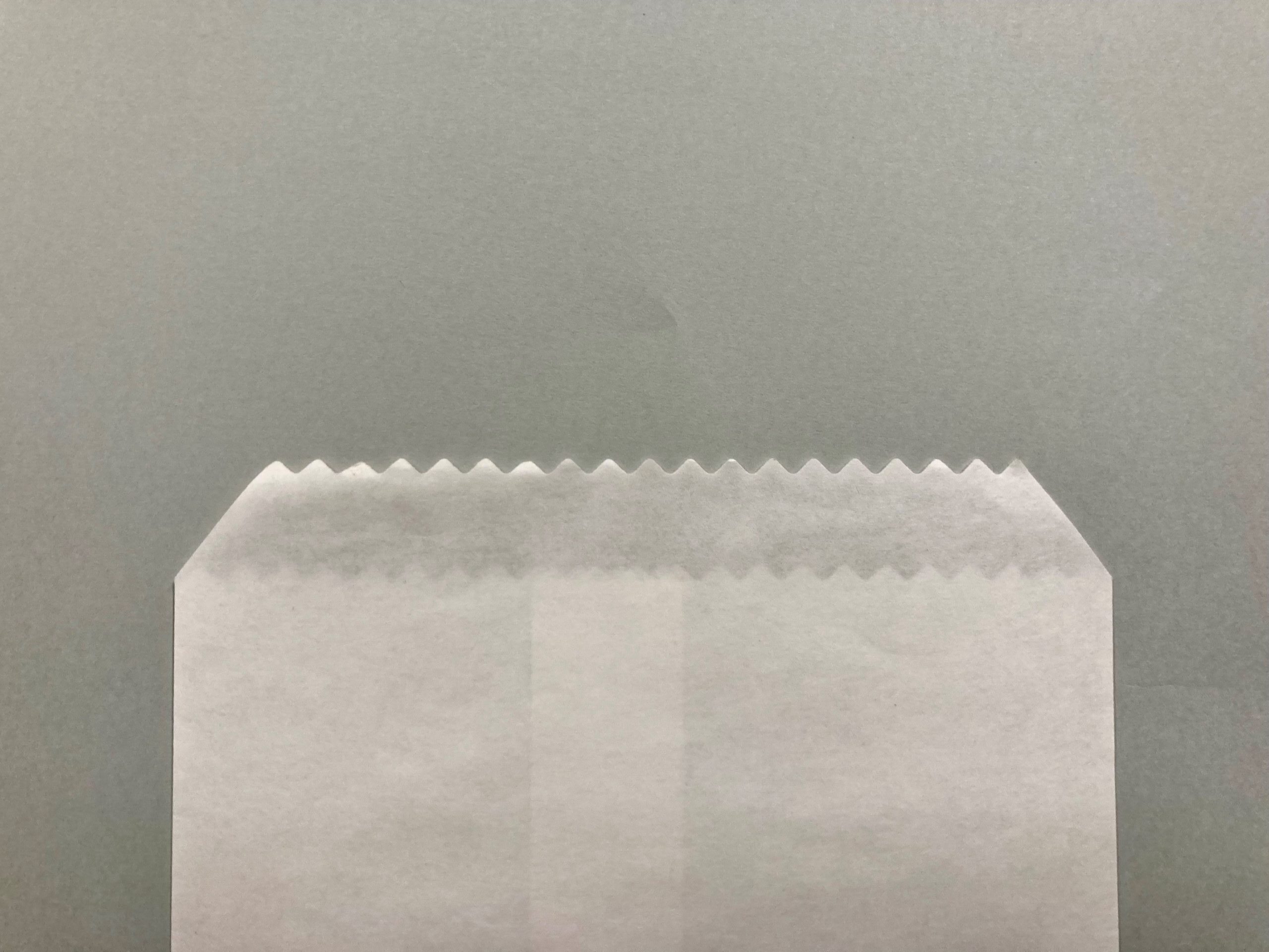 封筒用の製袋機では必ず折る箇所が平行・直角の四角形となります。