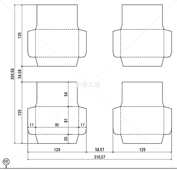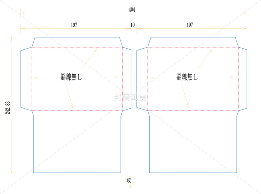 | KT-034 | 95×61 名刺サイズ封筒 ヨコ型 | カマス貼 4丁付け |