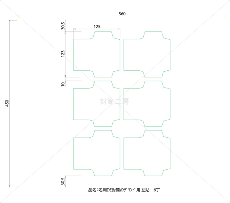| KT-047 | 55×91 名刺サイズ封筒 タテ型 | 左貼 6丁付け |